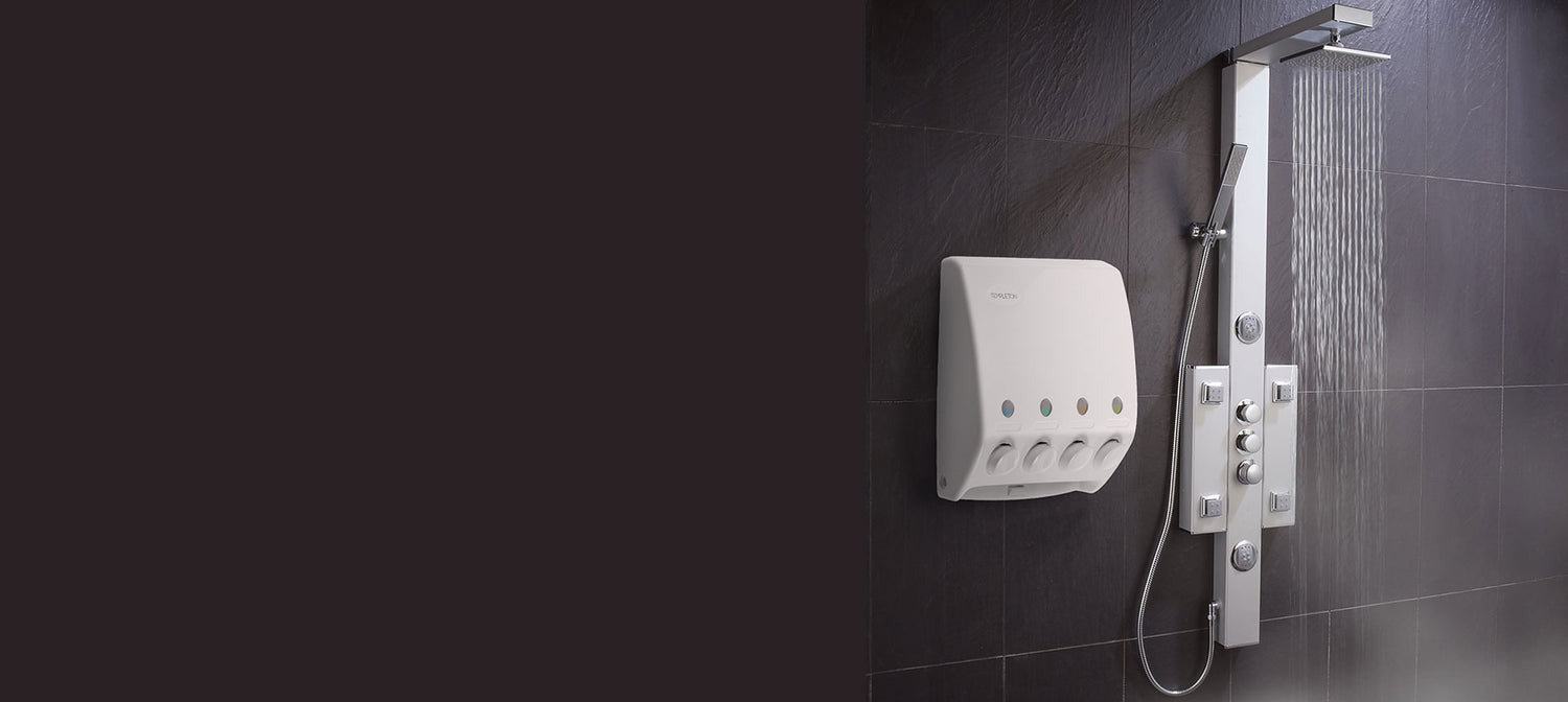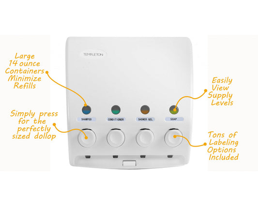 Templeton Four Chamber Shower Soap, Shampoo, Conditioner & Lotion Dispenser in White